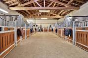 Écurie principale : 10 boxes de 3x3 équipés d'abreuvoirs automatiques, matelas et râteliers d'angle