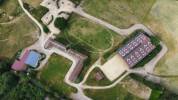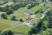 # Une carrière de sable de 60x20 partiellement couverte d’un manège en lamellé-collé (36x22) avec