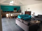 # Un séjour de 51 m2 avec cuisine équipée, cheminée à insert et baies vitrées donnant sur une