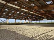 Un manège (30x50) avec dans sa longueur une rangée de 15 boxes et sellerie,