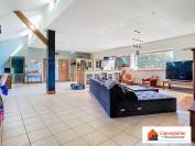 Un grand garage jouxte la maison, avec au-dessus un vaste grenier offrant un volume de stockage important.