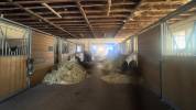 une écurie de 8 boxes aux façades escamotables, équipée d’abreuvoirs automatiques et d’un couloir d’alimentation, complétée par deux boxes de poulinage et deux stabulations ouvertes, chacune avec accès direct à son paddock. Une sellerie, une aire de pansage ainsi qu’une douche viennent compléter l’ensemble.