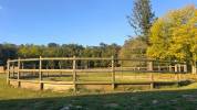 Ein 72 x 26 m großer Schuppen bietet ein großes Volumen, das als überdachter Arbeitsbereich, Lagerraum oder mehrere Boxen genutzt werden kann. Ein Longierzirkel, sechs Paddocks mit Unterständen und Raufen, drei Wiesen und ein Gelände, das sich für ein außergewöhnliches Paddock Paradise eignet, bilden das Ensemble. Die Wanderwege sind direkt vom Anwesen aus zugänglich und ein benachbartes Reitzentrum vervollständigt diese ideale Umgebung für Reiter.